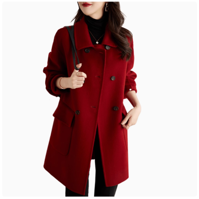 法式双面零羊绒大衣女中长秋冬季2024年新款高端羊毛呢子外套红色