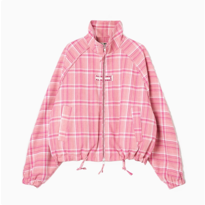 ALL BEINGS24AW秋季粉红格纹气球感立领夹克时尚高级感外套女