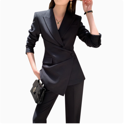 黑色原创西装套装女秋冬新款轻奢时尚通勤设计感外套收腰高端西服