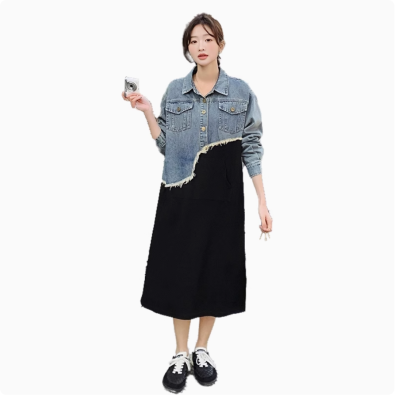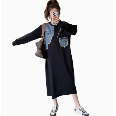 香港2025年春季新款小众设计感时尚韩系显瘦卫衣裙牛仔拼接连衣裙