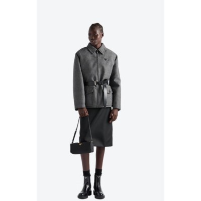 PRADA/普拉达女士金属徽标饰再生尼龙手拿包单肩包 黑色